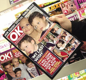 视台播出。她于2月22日和男友杰克·特威德举行婚礼。据报道婚礼报道权以100万英镑(约合140万美元)价格出售。她还通过接受专访、撰写“抗癌日记”等形式获取报酬,目的是为了让两个年幼的儿子未来更有保障。