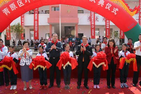 中新网11月4日电 据江西侨联网站消息,2009年10月31日上午,江西省吉安市青原区富田镇坪田小学锣鼓阵阵,鞭炮长鸣,五颜六色的彩旗迎风飘扬,同学们穿上了节日的盛装,戴上鲜艳的红领巾,脸上露出了灿烂的笑容,双手兴高采烈地挥舞着美丽的鲜花,热烈庆祝“加爱侨心小学”的落成。