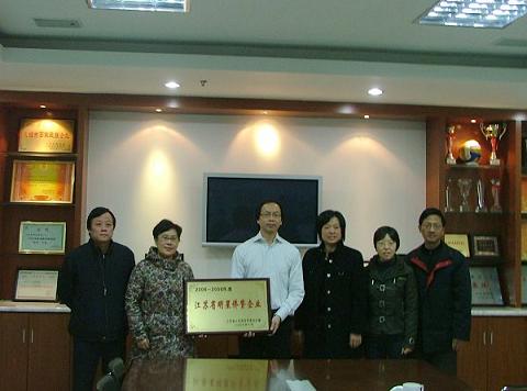 在江阴市侨办主任叶雪琴的陪同下,访问团走访了江阴侨资企业江阴福汇纺织有限公司,向其颁发了“2006-2008年度江苏省百家明星侨资企业”奖牌,该公司无锡总经理柳康成介绍了企业发展情况。