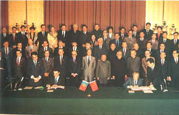 历史性时刻――中华人民共和国与葡萄牙共和国一九八七年四月十三日在北京共同签署关于澳门问题的联合声明。