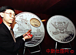 澳门货币暨汇兑监理署三十日发行一枚澳门回归纪念银币,这是该署为纪念澳门特别行政区政府於九九年十二月二十日成立之系列纪念币中的第一组。银币面值一百圆澳门币,重一盎司,为澳门法定货币,售价六十八美元或五百二十五港币。