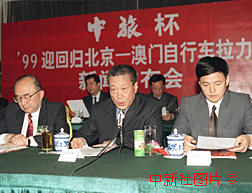 被列入庆祝澳门回归祖国正式庆典活动之一的"中旅杯九九迎回归北京至澳门自行车拉力赛"十四日在北京举行新闻发布会:届时将有来自全国各省市及香港、澳门的十二支代表队共七十二名运动员参加这一中国有史以来规模最大、水平最高、距离最长的比赛。