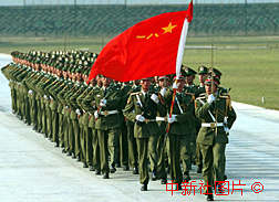 解放军驻澳门部队十九日首次开放给澳门特区筹委会委员、澳门地区全国人大代表、政协委员以及澳门各界代表参观。图为仪仗队通过检阅台。