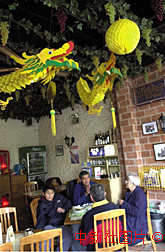 澳门小飞侠葡式餐厅,用二龙戏珠作装饰,迎接澳门回归和新年双喜临门。中新社传真 王瑶摄