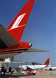 上海航空公司与台湾复兴、长荣航空公司合作推出了在澳门机场跨航转机、一票到底的服务,为台湾同胞来往大陆、台湾之间提供了便利。台湾的旅客已成为沪澳航线的主要客源。图为澳门机场上航与台湾复兴航空公司班级衔接默契。