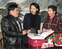 今年四十五岁的北京残疾人周志武(左),近日将自己和爱人亲自摄影、印放并制作的五十本《今日北京》摄影集,交予国务院港澳办澳门司的负责人,委托转交澳门残联。