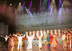 名家荟萃濠江庆回归。中国各地名演员将在澳门回归庆典亮相。这是排演最后一幕的盛况。 中新社传真 陈佳摄