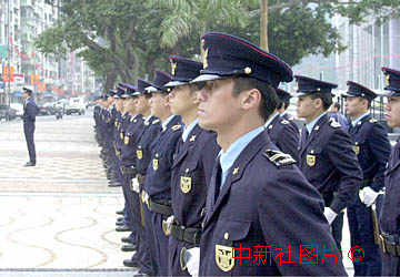 澳门警方仪仗队为参加政权交接和回归庆典的多项活动,加紧进行演练。