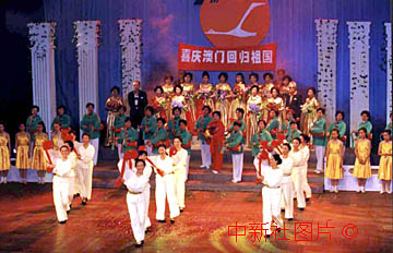 上海市侨联十二月十七日举行“庆祝澳门回归、迎接2000年”文艺汇演,一千多名侨界人士及港澳同胞亲属济济一堂,共同抒发对澳门回归祖国的喜悦之情。