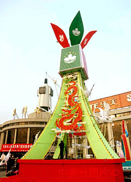 天津火车站前广场近日耸立起一座雄伟壮观的“明天更美好”灯组,以表现天津市民迎接澳门回归的喜悦心情,并祝愿祖国明天更美好。该灯组将在十二月十九日晚举行的天津人民迎庆澳门回归大联欢活动中开启。