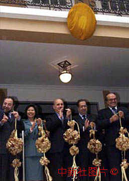 葡萄牙驻澳门领事馆十八日开馆,澳督到场祝贺并完成他在澳门的最后一次剪彩。中新社传真 宗金柱 摄