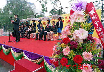 香港工商界十八日在雨中举行"维园千禧博览"会的开幕式,以迎接千禧年的到来。中新社传真杨佐桓摄
