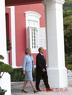 澳督韦奇立将军和夫人十九日下午四时三十五分离开居住了八年零八个月的竹仔室官邸,在澳门政权交接仪式之后于二十日子夜将飞离澳门。中新社传真 朱大强摄
