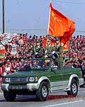 图文:澳门小朋友手举国旗场欢迎江泽民抵澳