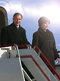 布什总统夫妇步出专机