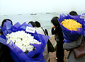 遇难者家属到海滨抛撒鲜花悼念亲人