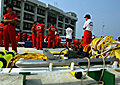 图:台湾澎湖28日高温士兵加运大量冰块降温