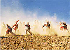 安塞位于陕北高原,那里的腰鼓历史悠久,格调古朴。人们在欢度节日,庆祝丰收的时候,都要演出腰鼓助兴,每次演出的阵容都很大,一般都有60名左右的鼓手。有时几个队连在一起,能拉开一两里路距离。腰鼓手们的装束一律着古代将士的便服,或黄或红包头,素色衣服,显得整齐壮观。电影《黄土地》里的腰鼓手们穿着黑色,想必是为了渲染贫苦背景。实际上,过去上场表演的腰鼓手们,很少有穿皂服的。
