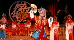 京剧的前身--徽剧 徽剧,渊源于明代的"徽池雅调"。明朝嘉靖年间,江西弋阳腔流传到安徽青阳,贵池一带,与当地民众喜闻乐见的民间曲调相结合,创造了新腔,形成了具有当地地方特色的青阳腔;青阳腔又受到民间山歌小调和昆曲的影响,长期发展而形成今天的徽剧。 清朝乾隆年间,徽剧名艺人高朗亭,郝天寿等,把徽剧带到扬州演出。当时扬州是全国文化中心之一,是"花部"的集中地,但很快即被艺术精湛的徽剧压倒。乾隆五十五年,高朗亭又带到了北京,受到了北京观众的欢迎。接着,又引起"四喜","春台","和春"等徽班进京。 徽剧进京不久,汉剧也进京,徽剧又从汉剧中吸收了西皮,进一步丰富,发展了自己的声腔。从此,徽剧不仅闯进了皇宫,振动了京城,而且广泛流传,影响了全国.它在北方扎下根子,逐渐吸收了北方的京腔,其高腔与北方语言结合起来,发展成为京剧。它在南方的戏曲影响也十分深远,江西的赣剧、四川的川剧、广东的粤剧、广西的桂剧、云南的滇剧,都受到徽剧不同程度的影响。 对徽剧表演艺术有着突出贡献的杰出代表是老艺人程长庚。程长庚名椿,字玉珊,安徽潜山人。他把徽音、京音、楚音兼收并用,脱俗创新,卓然成家,对徽剧来说,他起了承前作用,对京戏来说,他起了起后作用,因此,他成为京剧的开山祖师。 徽剧的表演艺术,丰富而多采。它讲究平台与高台武功,讲究身段、亮相的雕塑美,讲究人物形象的塑造和画面气派等。平台与高台武功在徽剧里最为突出,平台如"独脚单踢"、"叉腿单踢"、"刀门"、"飞叉"等都异常惊险,至于高台武工,更为险要,一般演员要翻三张桌子,有的要翻七张桌子。身段、亮相,在徽戏里很有雕塑艺术感。徽剧注重集体表演,必要时众歌齐舞,显得气势壮伟,场面热烈。徽剧的剧目很多,据记载有一千四百零四个,因年代较久,多为手抄本,不少的本子以失传。解放后,经过挖掘整理,富有徽剧特色的代表剧目有:《义虎报》、《巧姻缘》、《齐王点马》、《水淹七军》等。